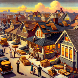 Rise to Popularity (1920s): Despite their invention in the early 20th century, asphalt shingles didn’t become widely popular until the 1920s. This rise in popularity was largely due to advancements in manufacturing processes and the growing demand for affordable and easy-to-install roofing materials in the burgeoning suburbs of America. The economic boom of the 1920s, coupled with the expansion of the middle class and the growth of residential housing, created a perfect market for asphalt shingles.
